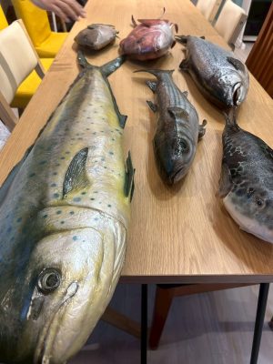 ・実際の魚の重さを体験できるコーナーもあり、みんな興味津々👀