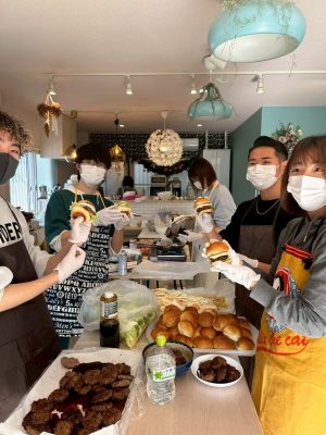 開始前からたくさんの方が並んでくださり、なんと用意していた70個のハンバーガーはあっという間に完売!